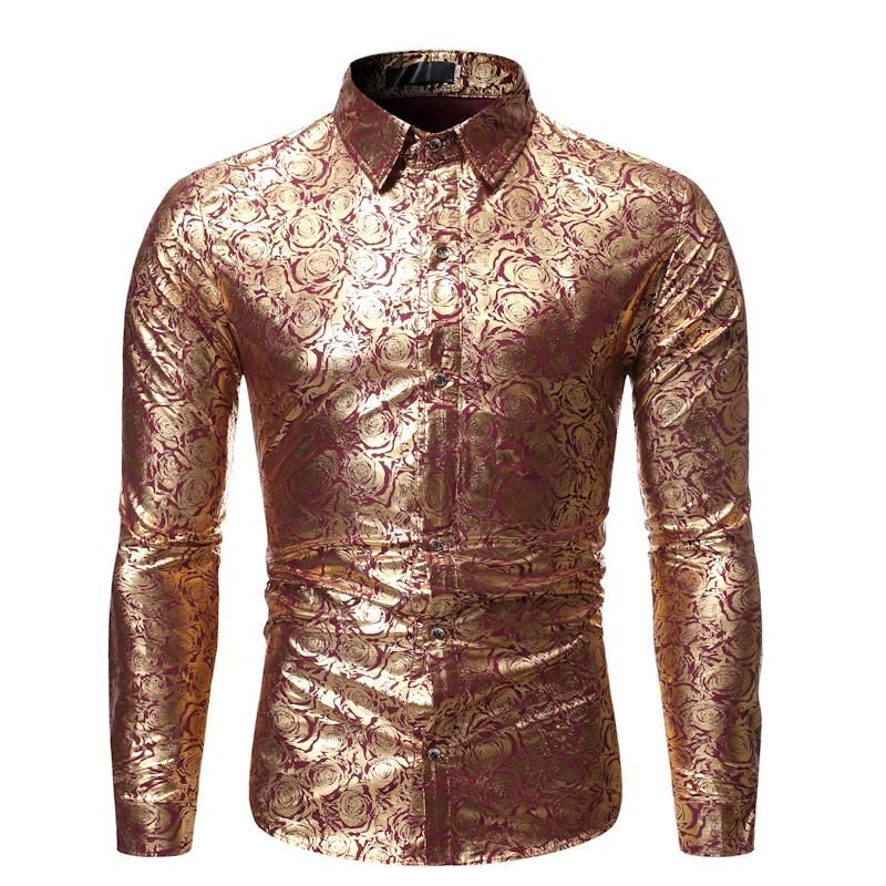 Mens Hipster Gold Rose Printed Slim Fit Long Sleeve Dress Shirts Tuxedo Shirt Prom Shirt Wedding Shirt Party Camisa De Hombre Wish